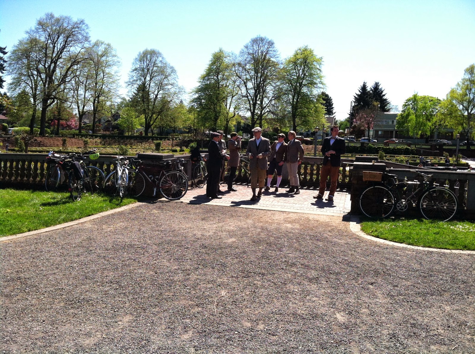 The second adventure was to the Tweed Ride in Peninsula park, where my mom, dad, and I took pictures of the CLASSIEST PEOPLE ON EARTH. Seriously! This ride is all about putting on tweed, looking like you stepped off the set of a movie, and riding your vintage (or vintage-looking) bike ten miles! Fun? You bet your bottom dollar! I was so inspired by everyone's lovely attire, I had to hold myself back from going to the local thrift store in that second. These people are FABULOUS. Tea length skirts? Hats with flowers? Colorful knee-high socks? Mustaches shaped with wax? YES PLEASE!